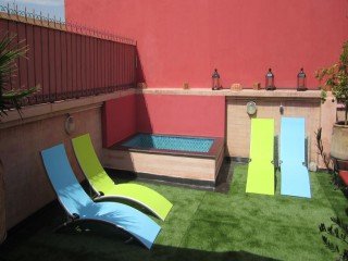 Doté d’un bassin profond et d’un bain à remous avec chaises longues, le Riad Houma est situé à Marrakech, à 10 minutes de route des jardins de Majorelle et à
