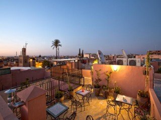 Cette maison d’hôtes traditionnelle marocaine se trouve dans la médina de Marrakech, à quelques pas de la place Jamaâ El Fna. Elle possède un toit-terrasse offrant une vue panoramique sur