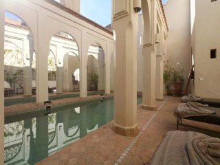 Ce riad dispose d’un hammam, d’une piscine intérieure et d’élégantes chambres ornées d’éléments de l’architecture islamique. Il propose également une terrasse meublée avec vue sur la médina, où vous pourrez prendre le petit-déjeuner, de même qu’un patio avec une fontaine et des plantes.