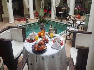 Un petit-déjeuner continental vous est servi chaque matin. Sur demande, vous pourrez le savourer dans votre chambre. Le midi et le soir, des plats marocains traditionnels vous sont proposés dans la cour ou sur le toit-terrasse.