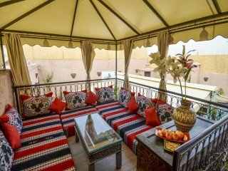 Sur la terrasse ou dans la salle à manger, vous dégusterez un petit-déjeuner continental le matin, ainsi que des spécialités marocaines chaque jour.