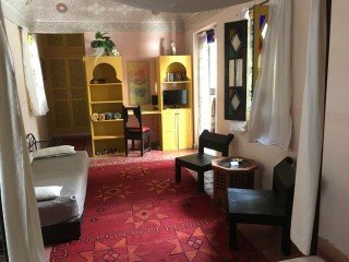 Situé au cœur du quartier de la médina de Marrakech, le Riad Nomades Marrakech est une maison d’hôtes traditionnelle marocaine installée à seulement 2 minutes des souks. Elle dispose d’une terrasse panoramique.Les chambres et les suites de Riad Nomades Marrakech sont spacieuses et climatisées. Elles comprennent une salle de bains privative.Le restaurant du Riad Nomades Marrakech établissement prépare des spécialités indonésiennes. Vous pourrez prendre vos repas dans le restaurant ou sur la terrasse (en été) surplombant la médina et les montagnes de l’Atlas.Le Riad Nomades Marrakechest situé à proximité du musée de Marrakech et du medersa Ben Youssef. La place Jamaâ El Fna vous attend à 7 minutes de marche. Ce quartier (Médina) est un choix idéal pour les voyageurs qui s’intéressent à ces thèmes : les marchés, les marchés en plein air et le shopping.C’est le quartier préféré des voyageurs visitant Marrakech, selon les commentaires clients indépendants.Riad Nomades Marrakech a également été bien noté pour son excellent emplacement à Marrakech ! Les clients en sont plus satisfaits en comparaison avec d’autres établissements dans cette ville.Les voyageurs individuels apprécient particulièrement l’emplacement de Riad Nomades Marrakech établissement. Ils lui donnent la note de 10 pour un séjour en solo.Nous parlons votre langue !