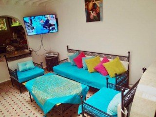 Doté d’une piscine extérieure ouverte en saison et d’un barbecue, le Riad Zahra Marrakech Piscine vous accueille à Marrakech, à 11 minutes la médersa Ben Youssef et à 13 minutes du musée de Marrakech. L’appartement dispose de la climatisation et d’une terrasse.Riad Zahra comprend également 3 chambres, un coin salon et une cuisine équipée d’un four. Les 3 salles de bains sont pourvues d’une baignoire et d’un bidet.L’établissement Riad Zahra sert un petit-déjeuner buffet tous les matins.Le Riad Zahra Marrakech Piscine se trouve à 1,6 km du souk de la médina et à 20 minutes à pied de la place Jamaâ El Fna. L’aéroport de Marrakech-Ménara, le plus proche, est situé à 6 km.Riad Zahra établissement a également été bien noté pour son excellent rapport qualité/prix à Marrakech ! Les clients en ont plus pour leur argent en comparaison avec d’autres établissements dans cette ville. Nous parlons votre langue !